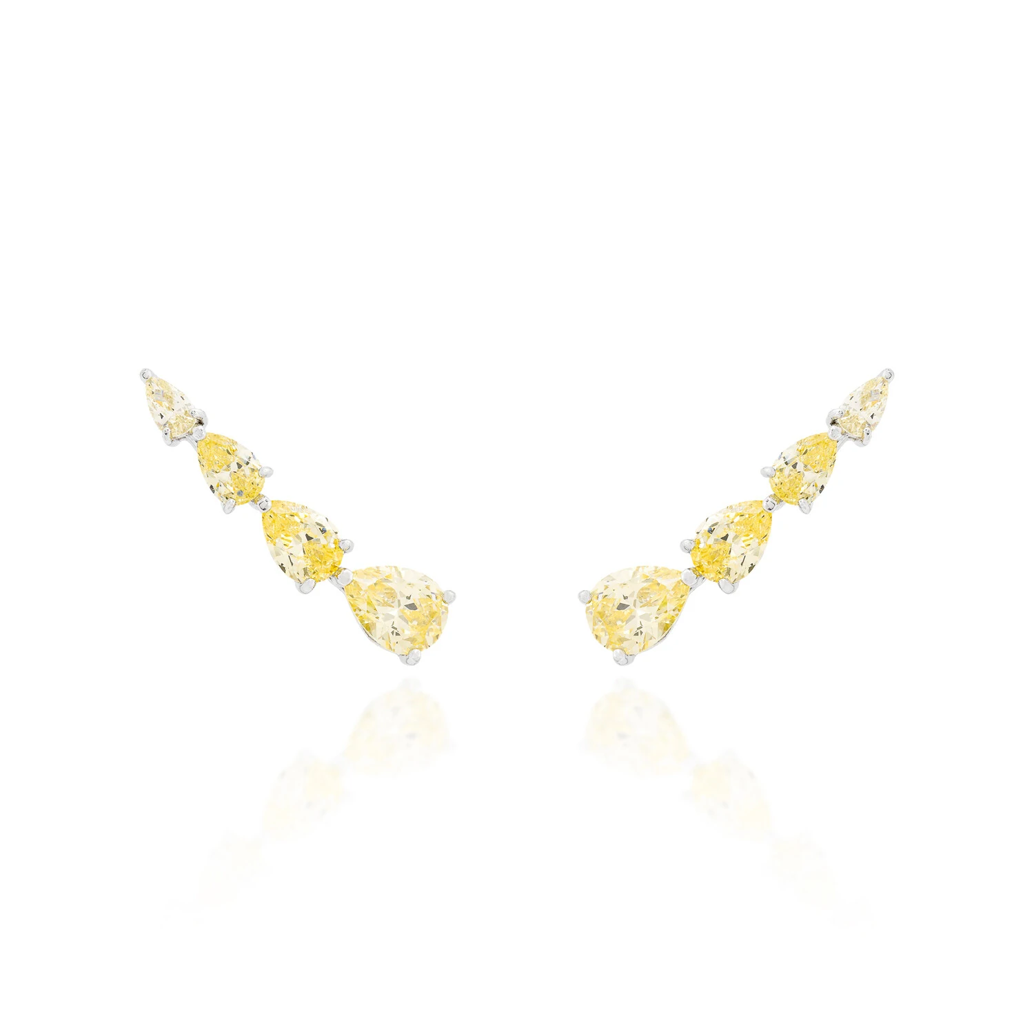 Brinco earcuff 4 gotas em Zircônia Yellow Fancy, confeccionado em prata 925, com banho de ródio branco.