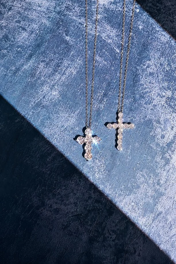 Colar pingente Cruz 2,5 cm, com 11 pontos em Moissanite 4mm. Confeccionado na prata 925, com banho de ródio branco.