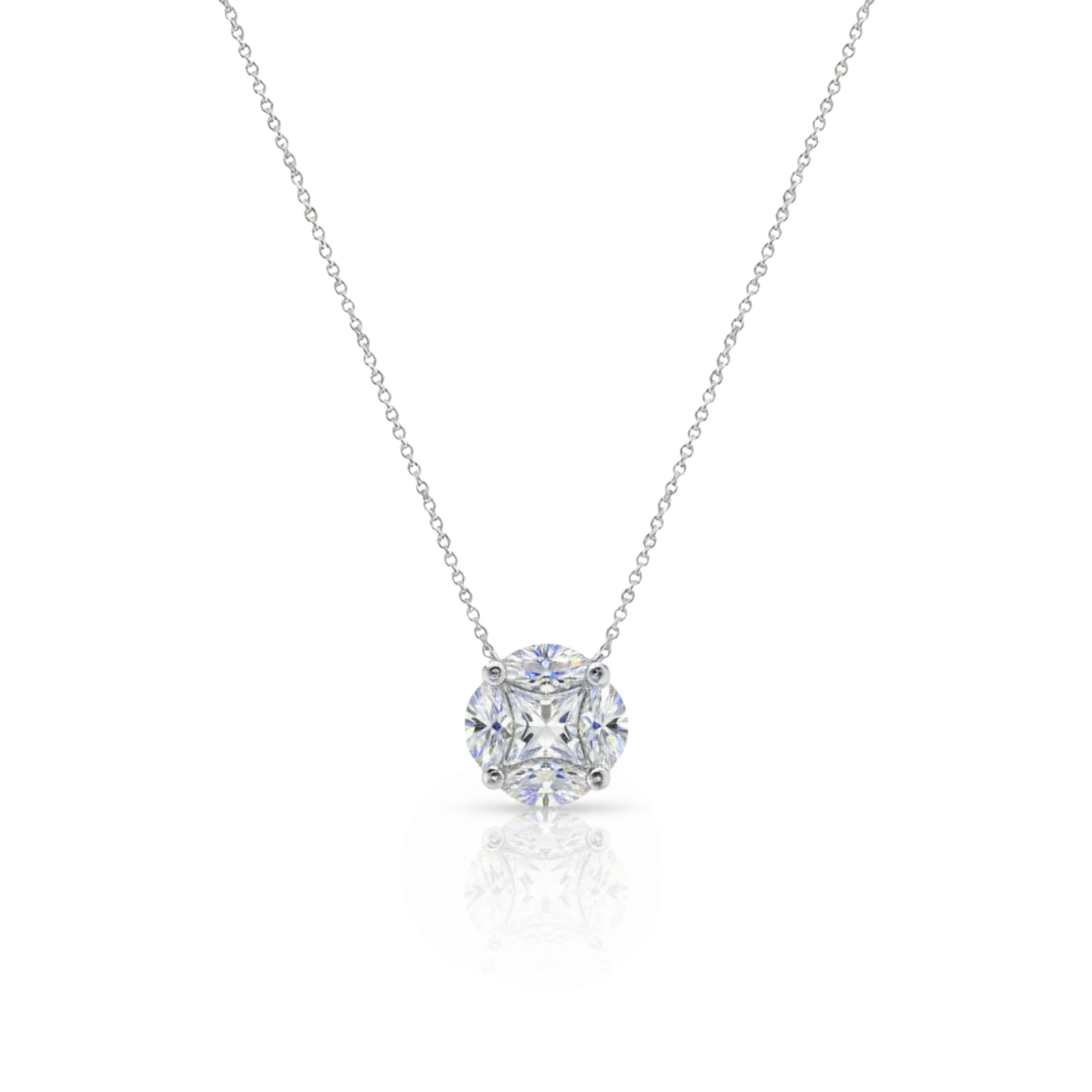 Design clássico com um toque de inovação. Esta joia traz a elegância da Moissanite em uma cravação que une lapidações refinadas para criar o efeito visual de uma única pedra maior e deslumbrante. Um colar que une brilho, sofisticação e leveza em uma peça atemporal — perfeita para elevar qualquer ocasião.