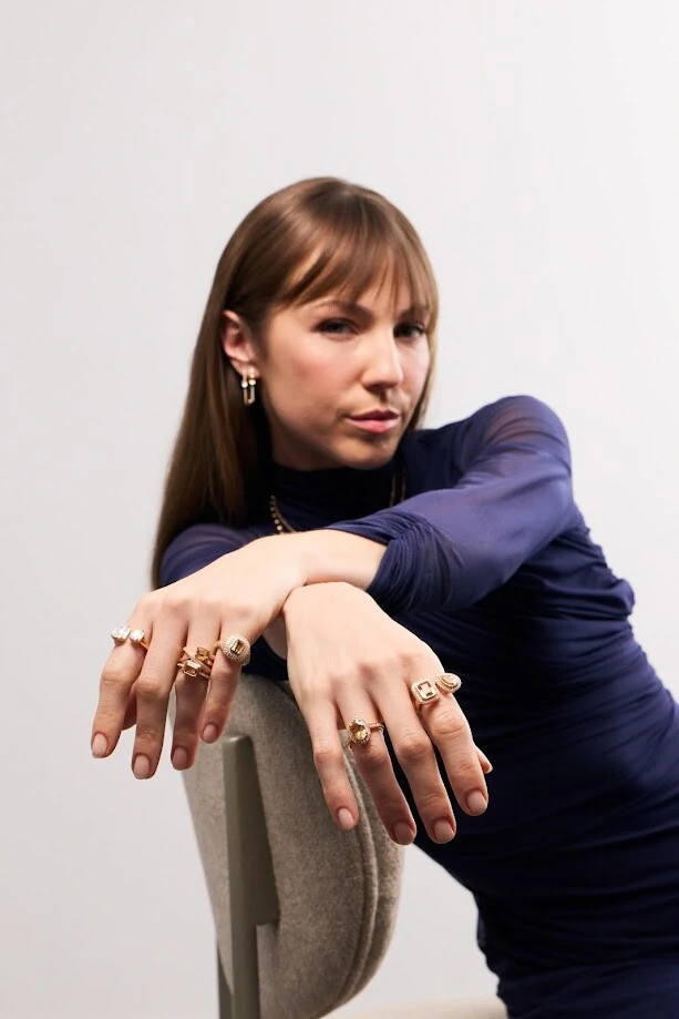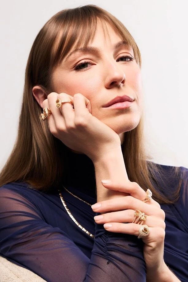 O anel Queen combina a intensidade luminosa da moissanite com o calor dourado do citrino, criando uma peça imponente e sofisticada. Seu design expressivo é perfeito para quem gosta de joias que transmitem poder e elegância.