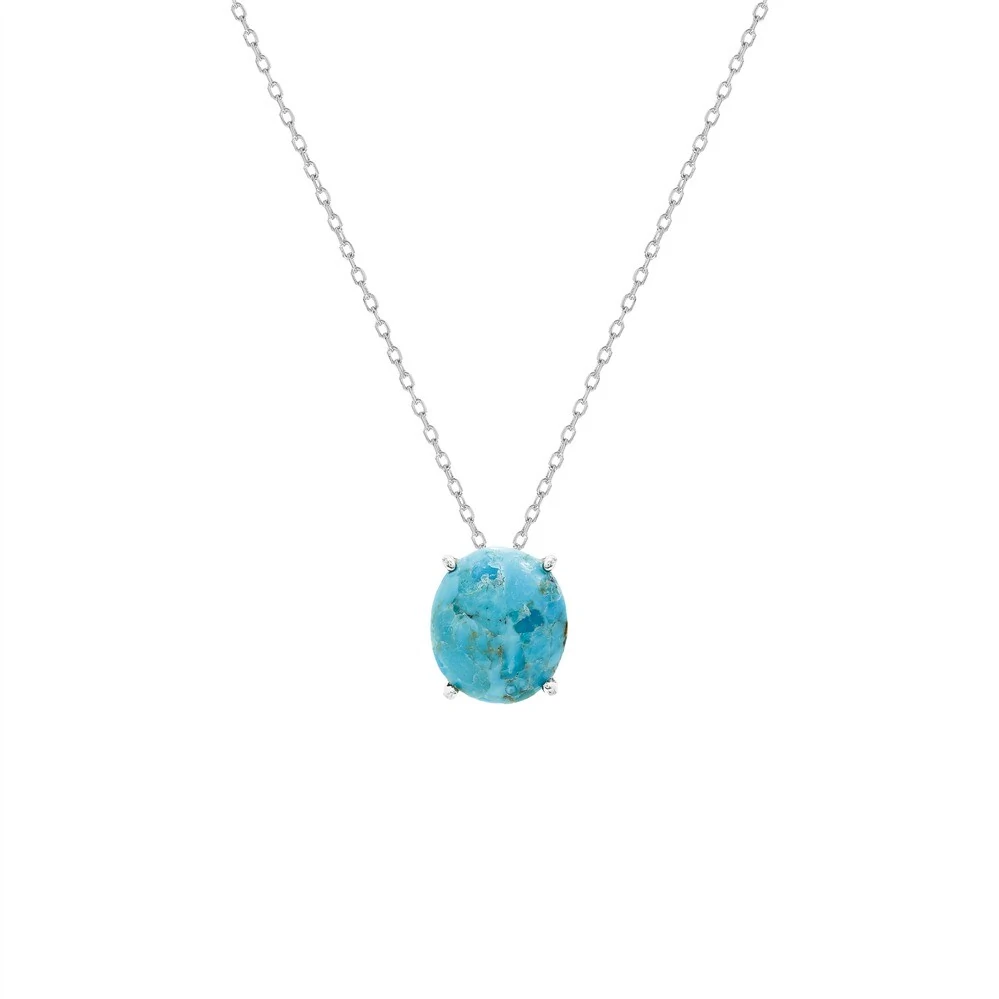 Elara reflete o encontro entre serenidade e força. A turquesa, em sua tonalidade vibrante, é realçada por metais polidos que valorizam sua profundidade natural. Um colar que traduz frescor, equilíbrio e presença.