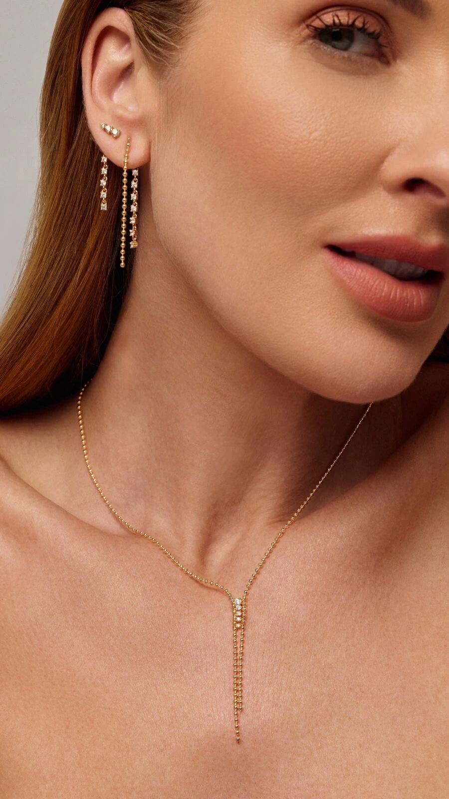 Modelo ear jacket com uma fileira de bolinhas polidas e outra cravejada.