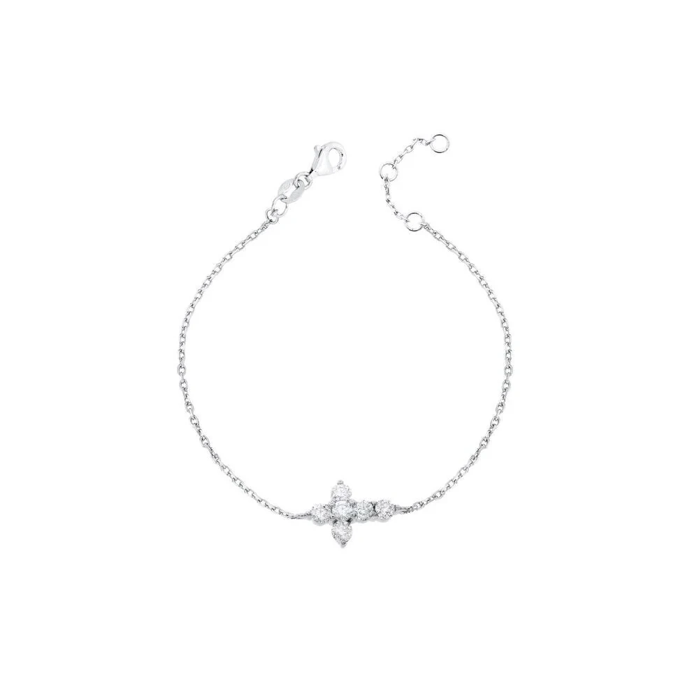 Pulseira elos portugueses com cruz, 6 pontos em Moissanite.