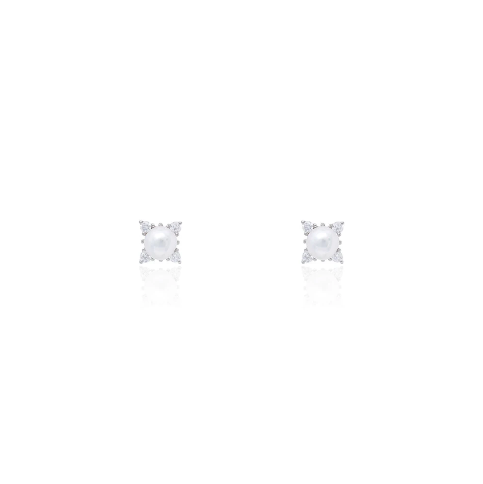Brinco de pérola com pontos de luz, confeccionado em prata 925 e banho de ródio branco.