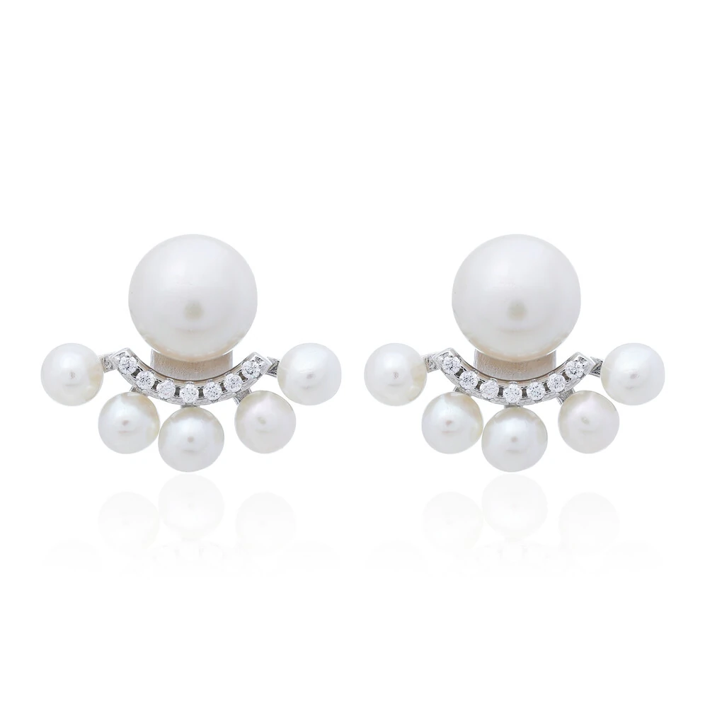 Brinco de pérola, confeccionado em prata 925 e banho de ródio branco.