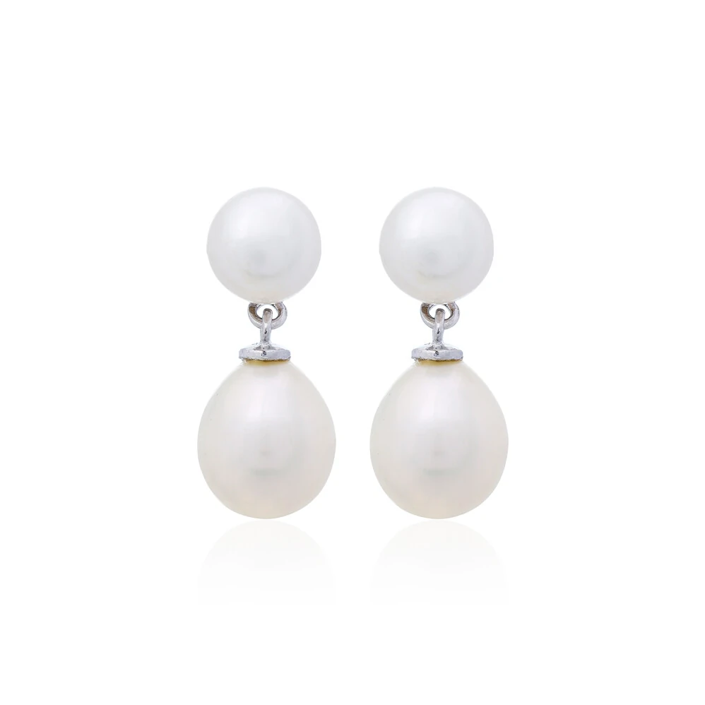 Brinco de pérola, confeccionado em prata 925 e banho de ródio branco.
