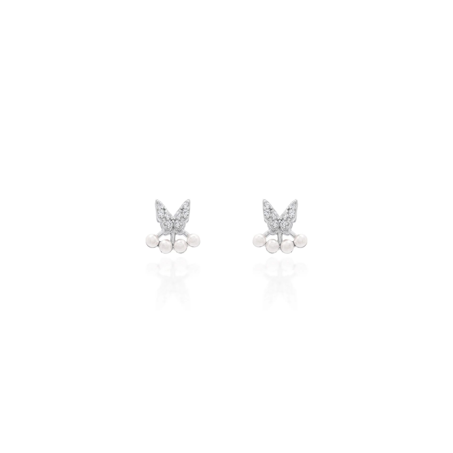 Brinco de borboleta cravejada com pérolas. Confeccionado em prata 925 e banho de ródio branco.