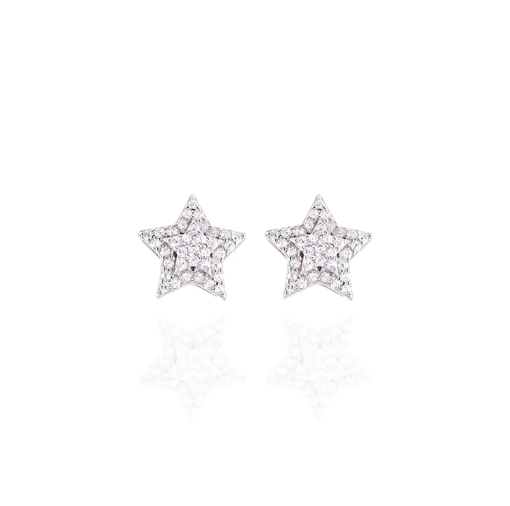 Brinco confeccionado na prata 925, no banho de ródio branco. Duas estrelas sobrepostas microcravejadas