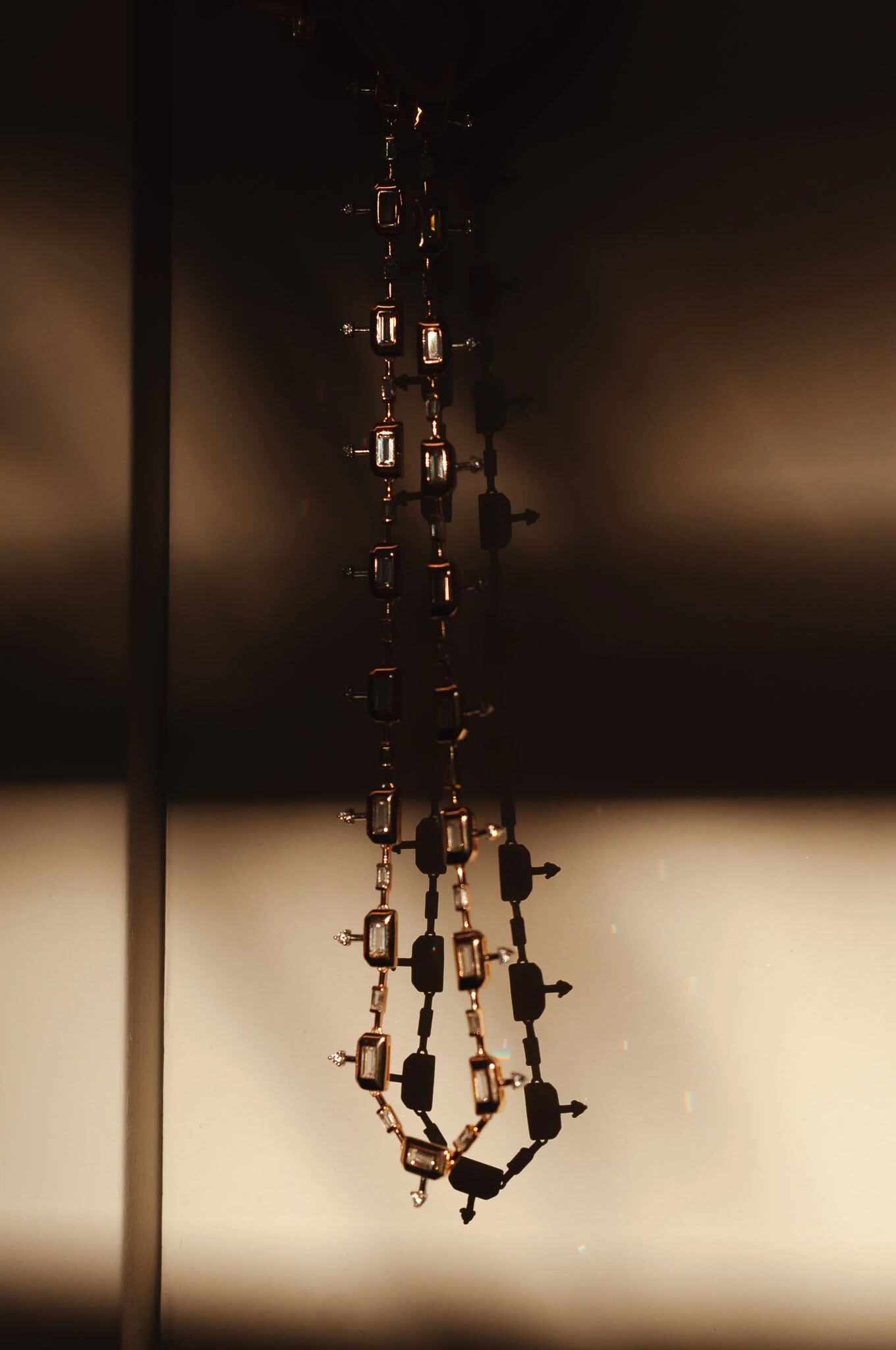 A Lapidação Baguete, tem facetas retas e alongadas, criando reflexos mais geométricos e modernos, diferentes do brilho facetado tradicional.