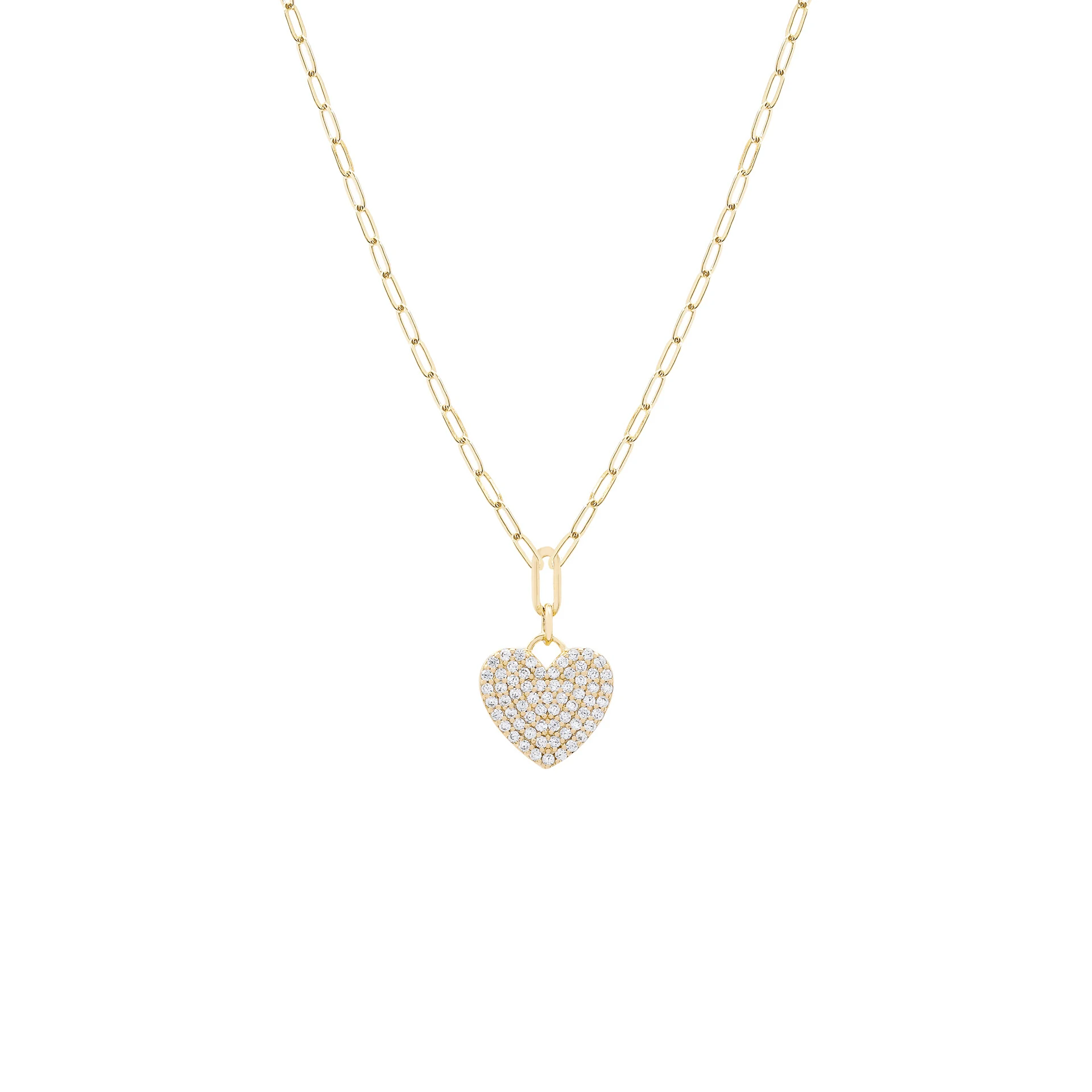 Corrente modelo cartier e pingente de coração microcravejado em zircônias incolores.