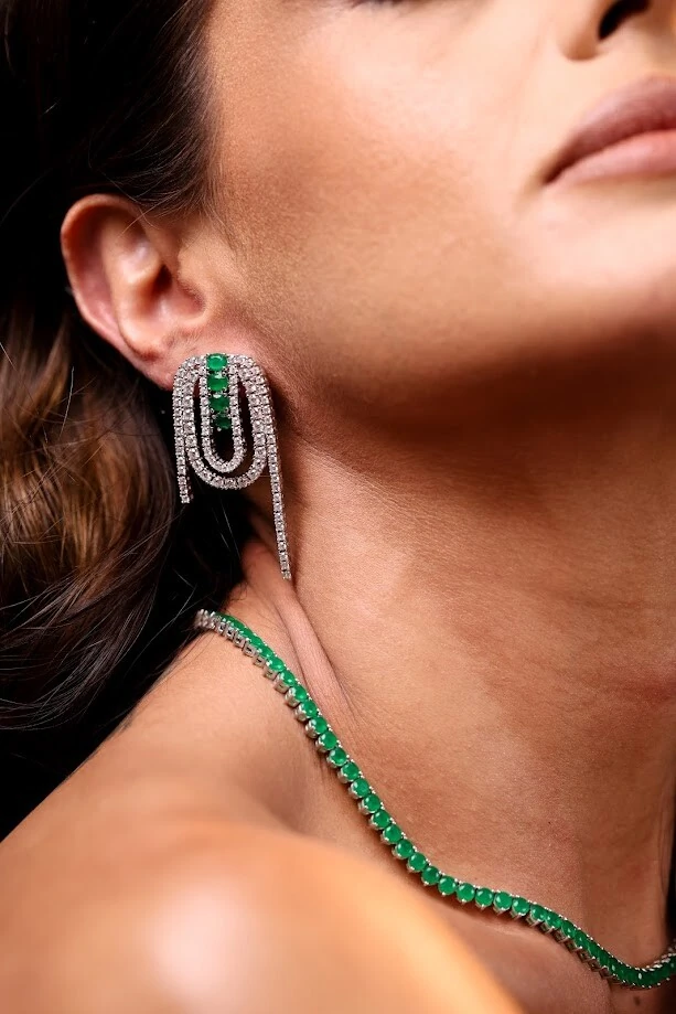 Riviera em Zircônia Incolor e Zircônias Esmeralda Fusion.