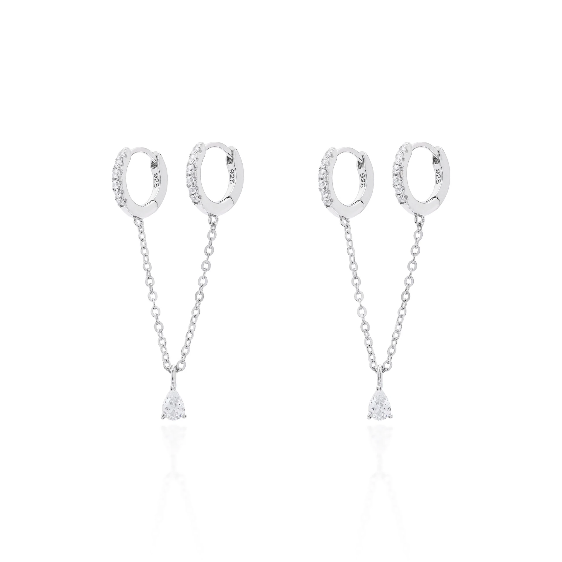 Brinco de argola dupla confeccionado na prata 925, no banho de ródio branco.