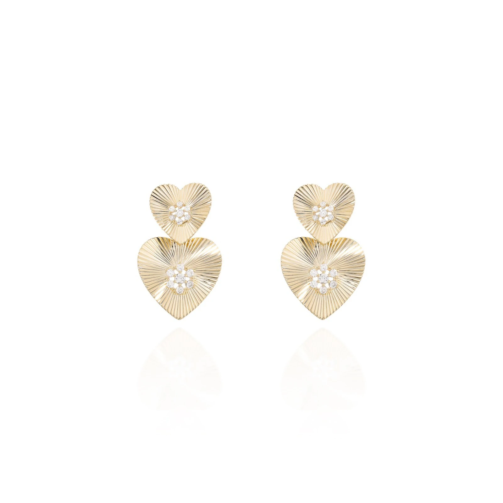 Formato de coração raiado, com centro cravejado em zircônia incolor.