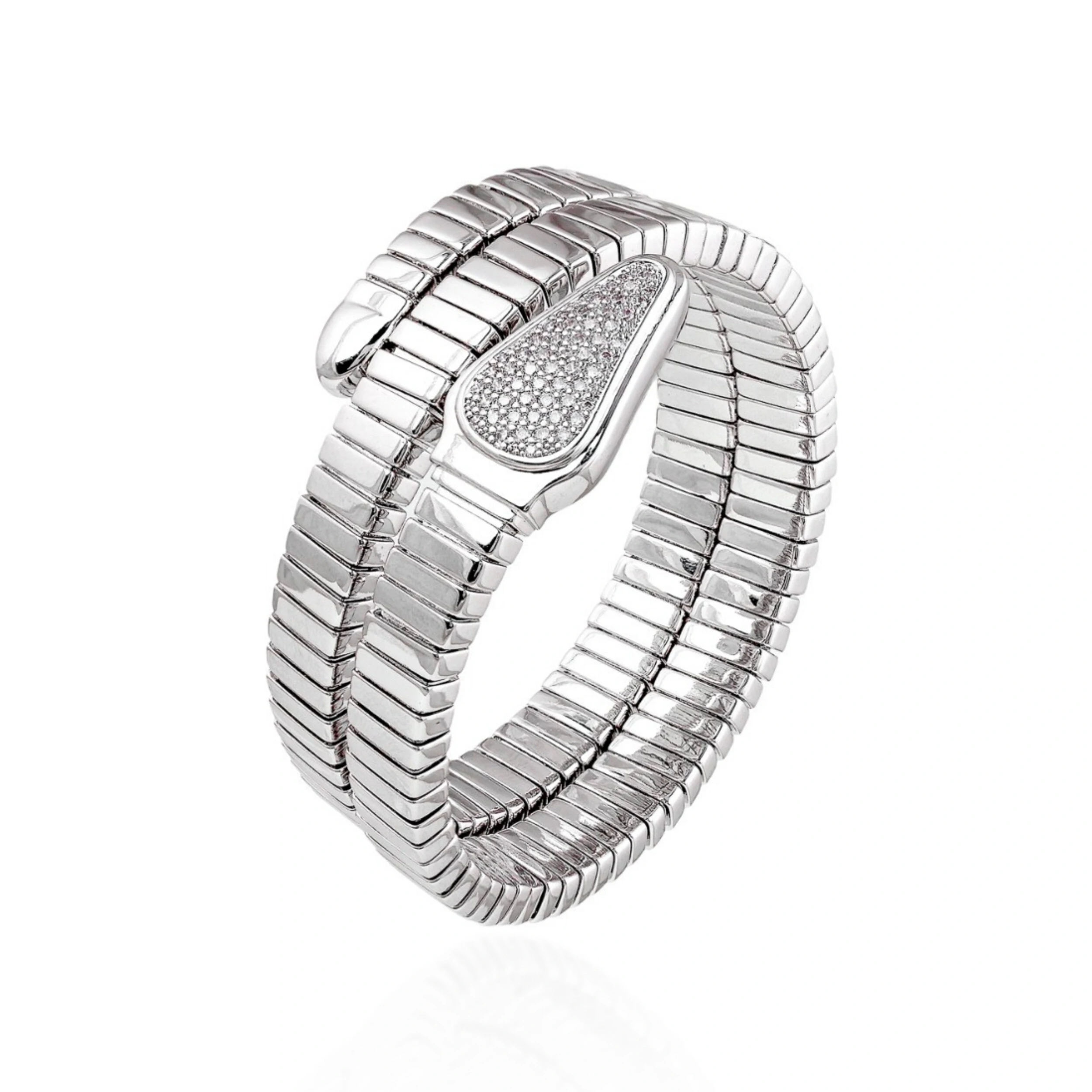 Bracelete confeccionado em aço cirúrgico.