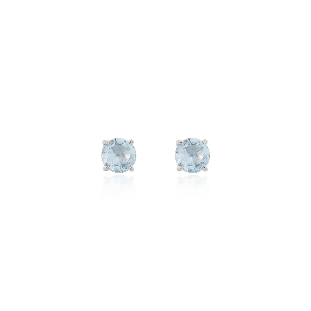 Design clássico da joalheria com cravação de 4 garras e zircônia água marinha.