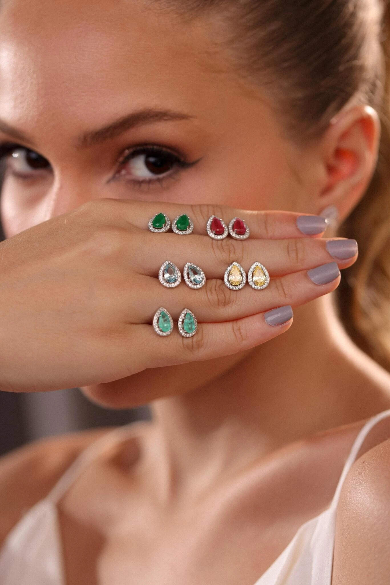 A zircônia colombiana se destaca pelo brilho preciso e pela pureza do tom verde-água — uma cor que habita o limite entre o céu e o mar. Translúcida e serena, reflete equilíbrio e frescor, revelando um encanto que nasce da leveza.
