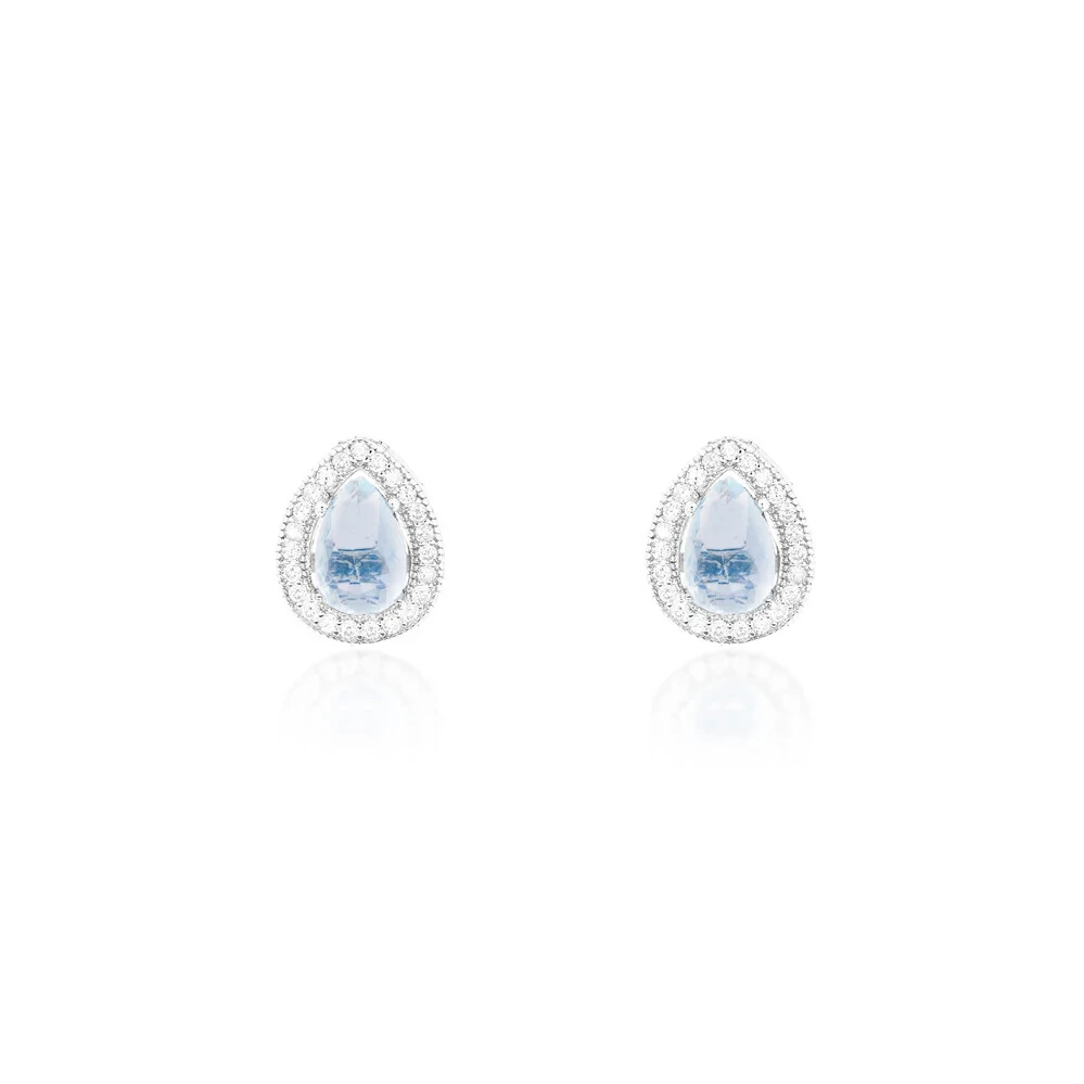 Formato de gota com borda cravejada em zircônia incolor.