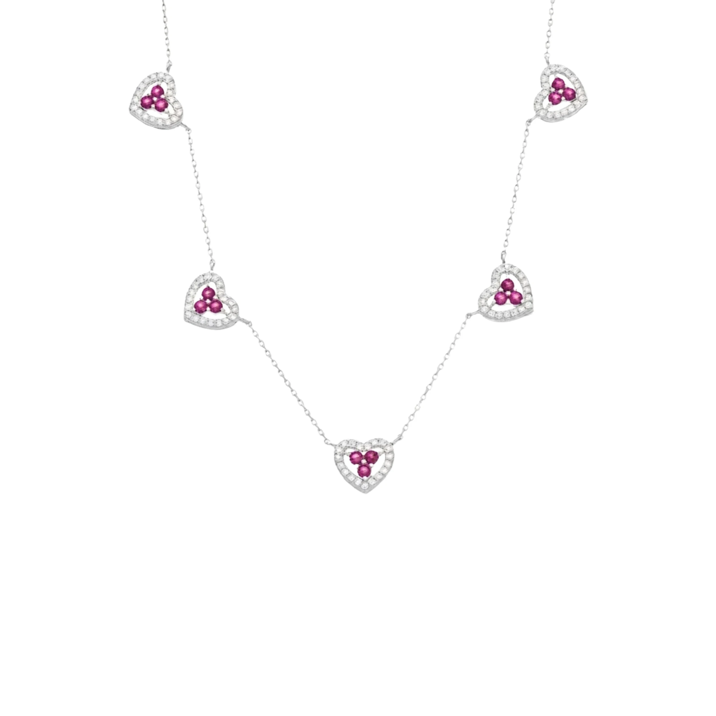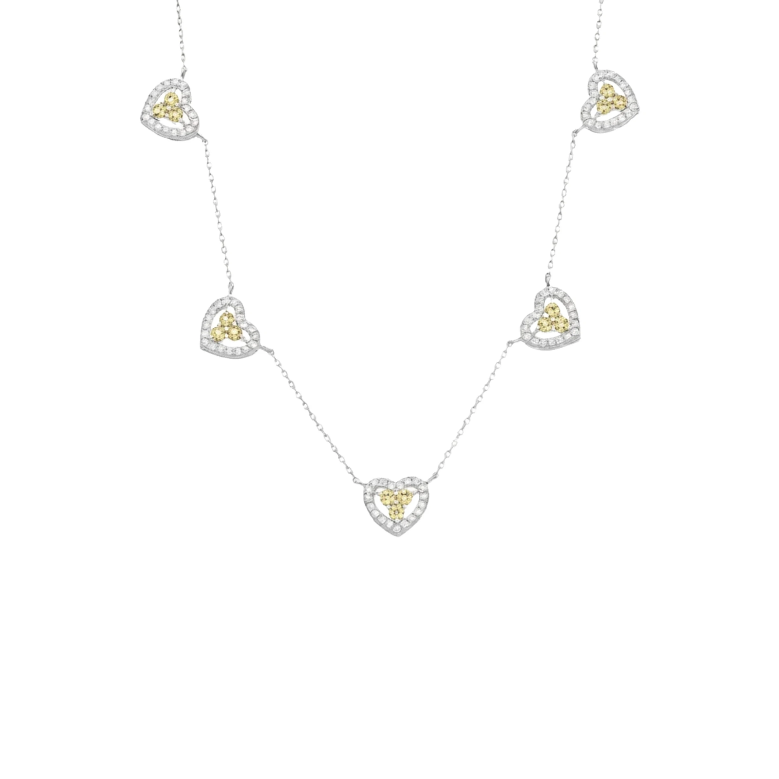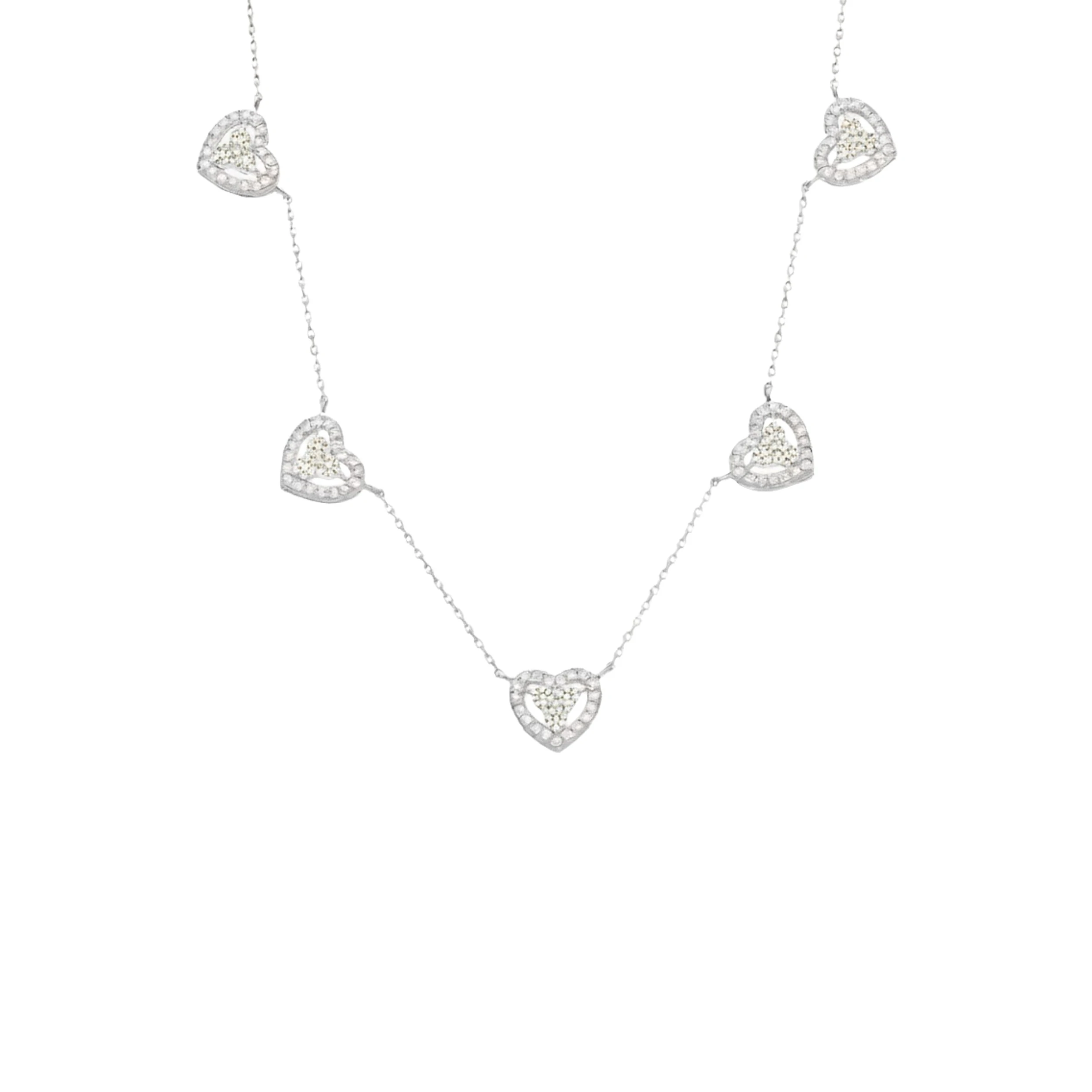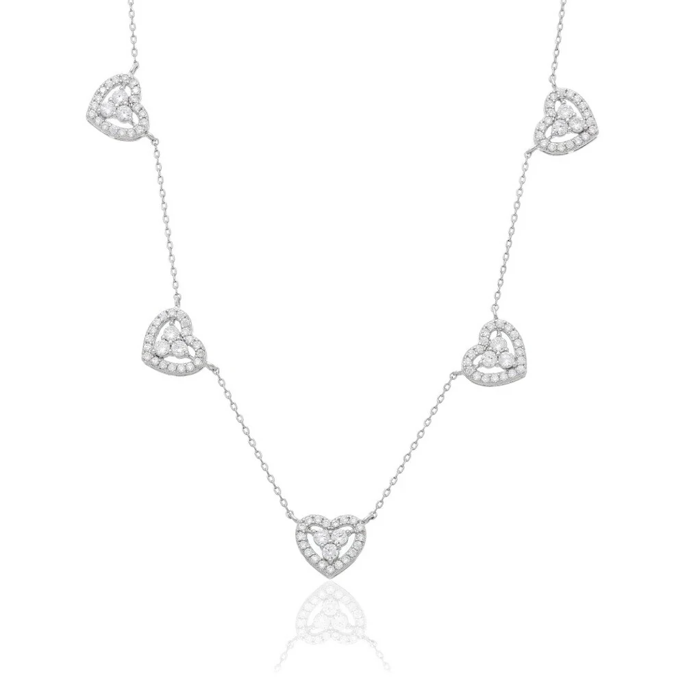 Corrente modelo elo português com 5 pingentes fixos na corrente design corações cravejados com zircônias. Escolha a cor que mais combina com você.