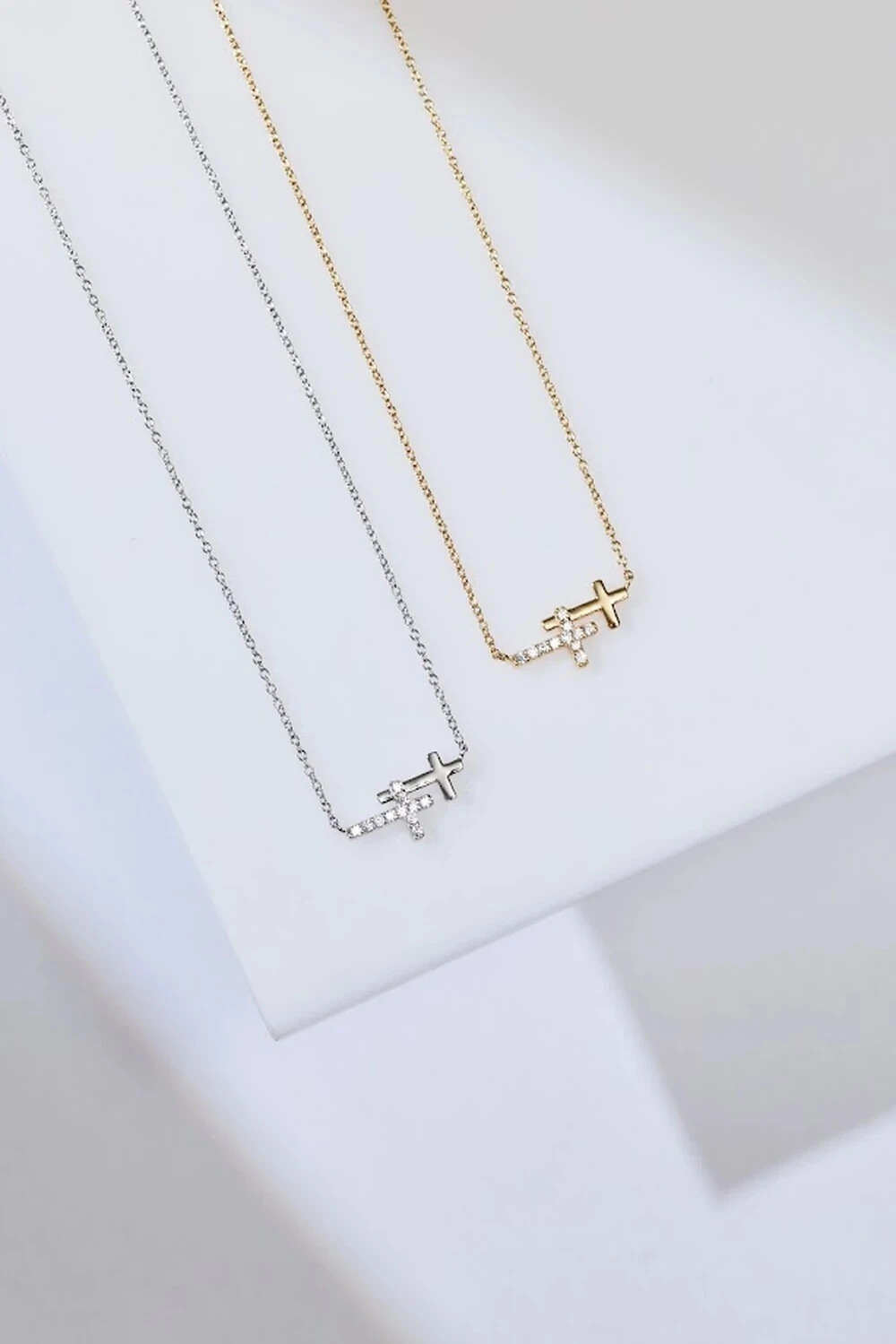 Dupla cruz cravejada em Zircônia inclor e polida.