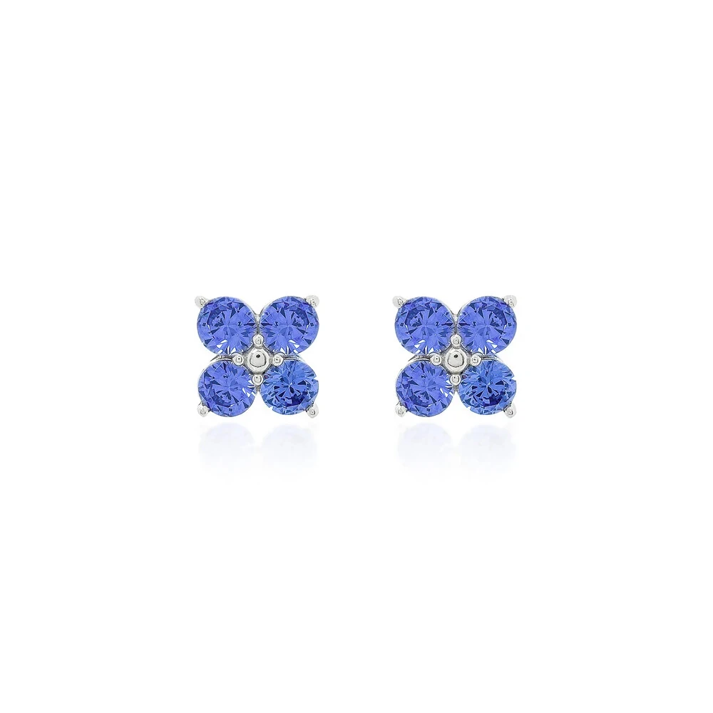 Quatro pétalas em Zircônia colorida, com miolo liso em prata.